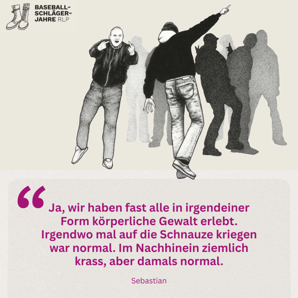 Der Hashtag geht auf den Journalisten Christian Bangel zurück, der im Herbst 2019 die Zeug*innen der Baseballschlägerjahre aufrief, ihre Erfahrungen zu teilen – und innerhalb von Tagen tausende Antworten erhielt. Der Hashtag wird in der öffentlichen Wahrnehmung häufig nur mit Ostdeutschland verbunden. Mit dem Titel „Baseballschlägerjahre RLP“ knüpfen wir bewusst an diese bundesweite Debatte an und hoffen sie zu erweitern: Auch in Westdeutschland – und konkret in Rheinland-Pfalz – gab es in dieser Zeit rechtsextreme Gewalt, neonazistische Gruppen und engagierten Widerstand.